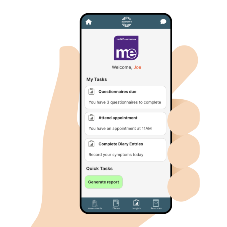 The ME Association’s app and Clinical Assessment Toolkit is available digitally through the autonom-e app.